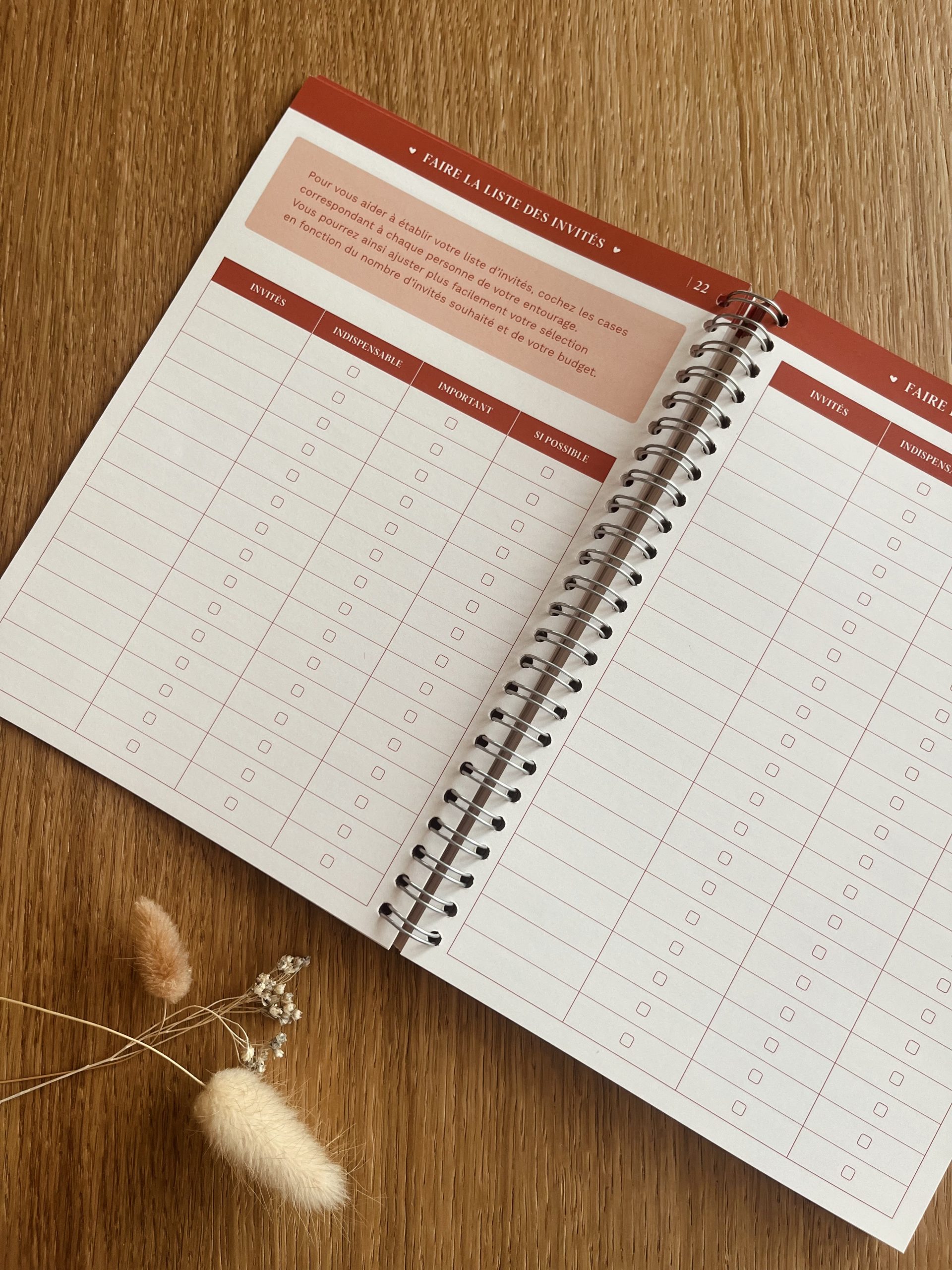 Ce guide complet de près de 200 pages, inclu l’ensemble des listes, tableaux et conseils. Son format A5, relié par une spirale, vous permettra de l’emporter facilement avec vous pour le remplir dès que vous en avez besoin.
